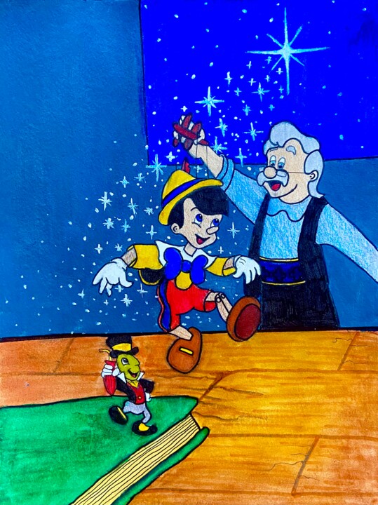 Pinocchio Geppetto Jiminy Cricket Disn Malerei Von Evangelina Artmajeur
